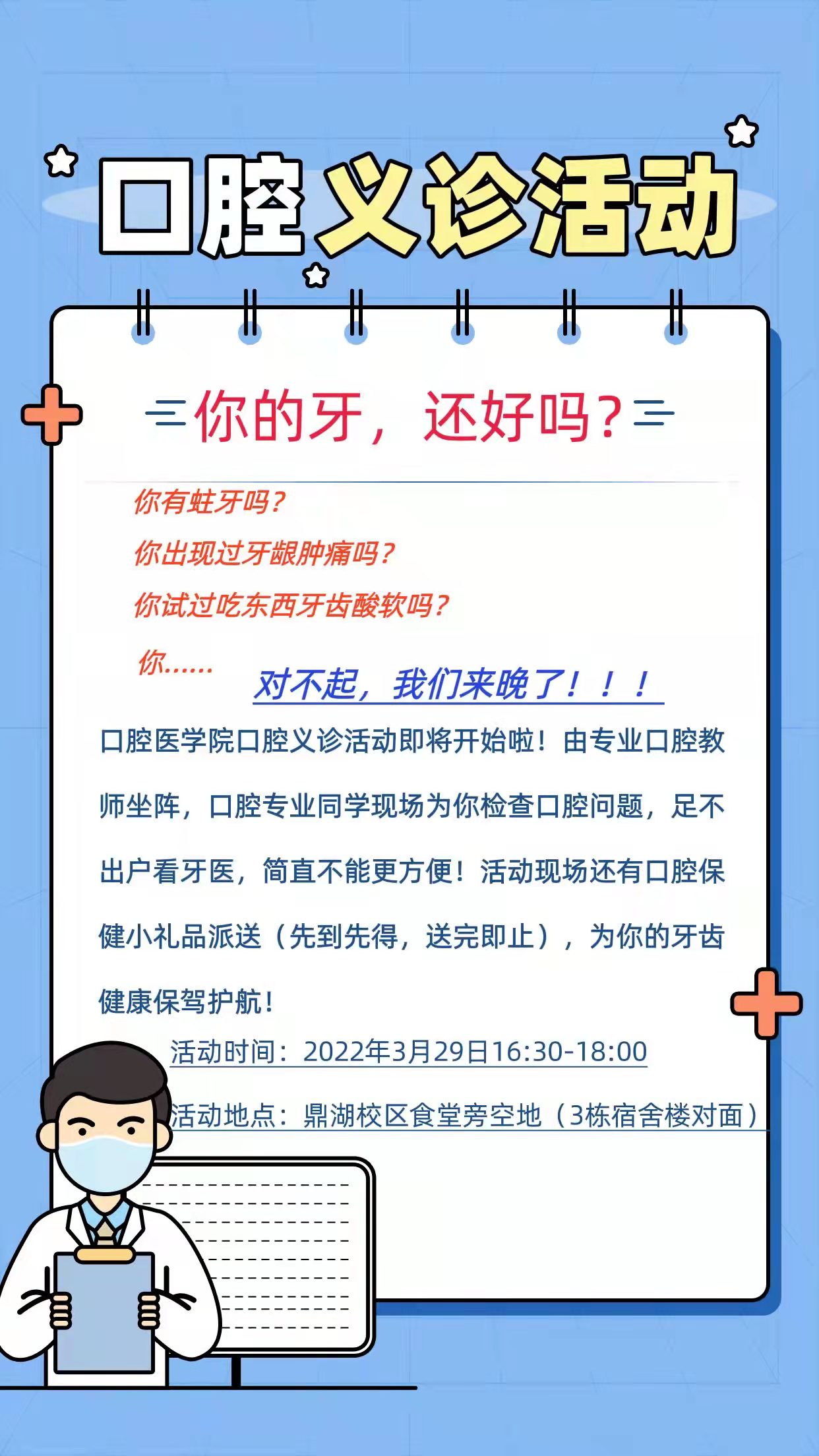 2022年3月29日鼎湖校区食堂旁将开展口腔义诊活动