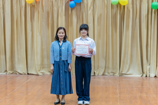 刘燕书记给一等奖获得者曾灿美同学颁奖