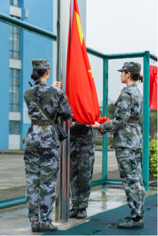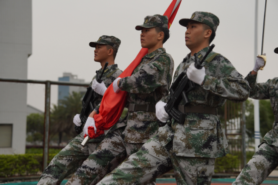 升旗仪式开始,国旗护卫队列着整齐的队列方块,护卫着圣洁的国旗,精神抖擞地迈着正步,来到了升旗台下。全体师生肃立,行注目礼,国歌奏起的瞬间,鲜艳的五星红旗徐徐升起。