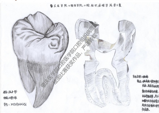 切片组二等奖  徐仪作品 口腔硬腭黏膜                        磨片组二等奖  张子彤作品 龋病