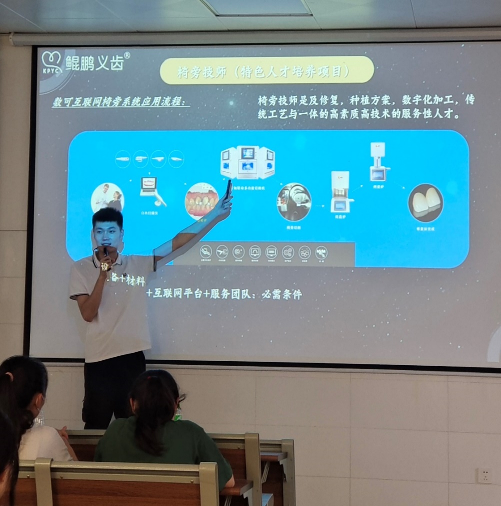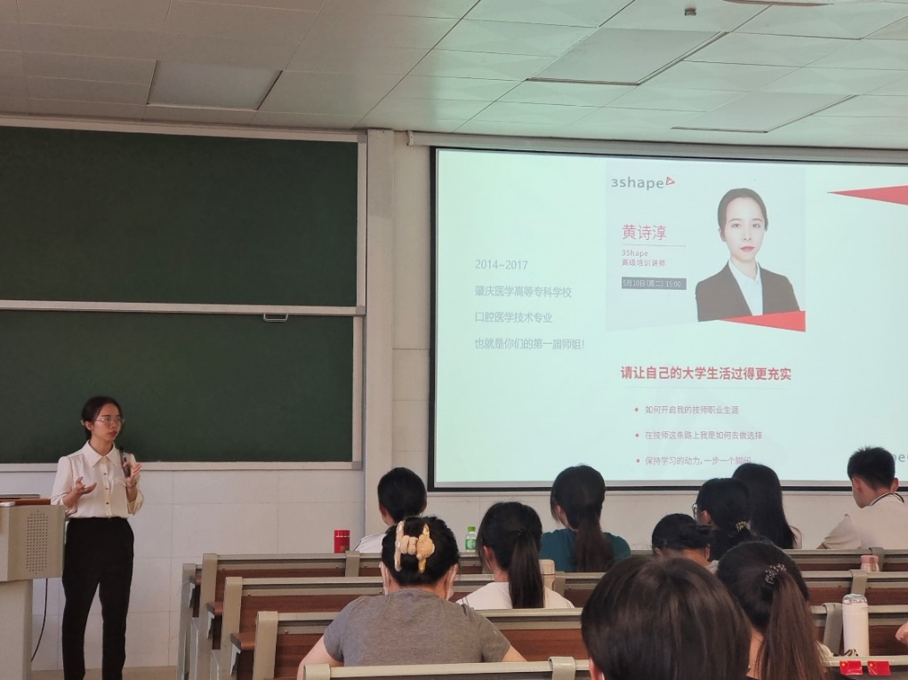 为了让我院技术专业的同学们深入了解我院技术行业发展现状和趋势及做好口腔技师职业生涯规划,肇庆医学高等专科学校必赢bwin线路检测中心邀请惠州市鲲鹏义齿有限公司培训教师陈荣娣(我校2017届我院技术专业毕业生)、3 Shape公司高级培训讲师黄诗淳(我校2017届我院技术专业毕业生)以及鲲鹏义齿有限公司椅旁项目项目培训专员赵鲁男老师于2022年5月10日下午在新区校区进行了专题讲座。讲座由我院技术教研室副主任朱亚利老师主持,必赢bwin线路检测中心党支部书记兼院长黎祺老师、2021级我院技术专业辅导员陆水英老师、2017届我院技术专业辅导员梁洁老师和2021级我院技术1、2班全体同学参加。