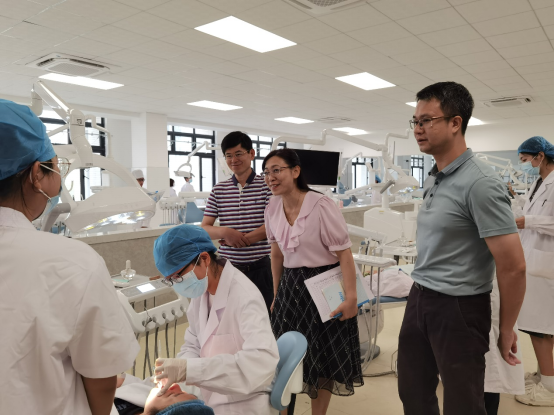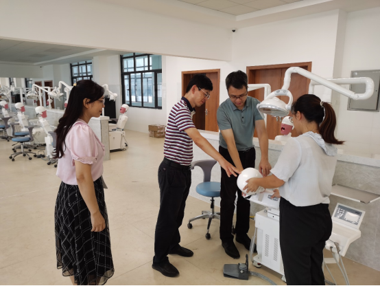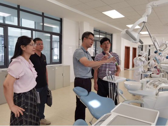陈彤副书记先后参观巡视了口腔综合技能实训室、口腔临床技能实训室、口腔模拟技能实训室、口腔模拟诊室,了解实训课程安排及各种设备的使用情况。同时深入课堂一线,切实了解教师授课以及学生实训的情况。