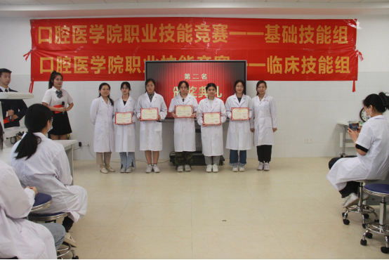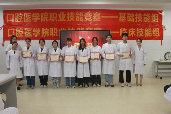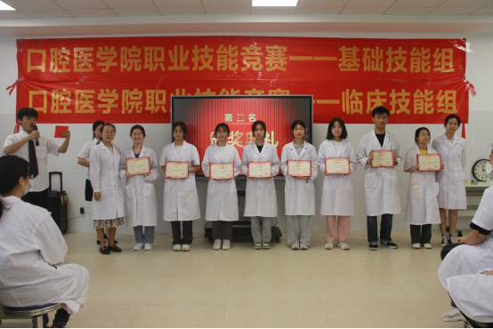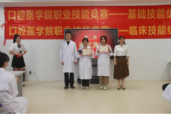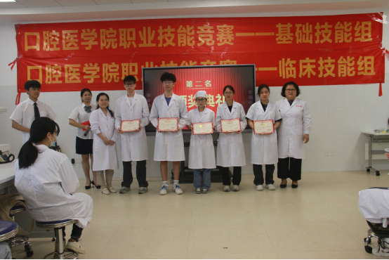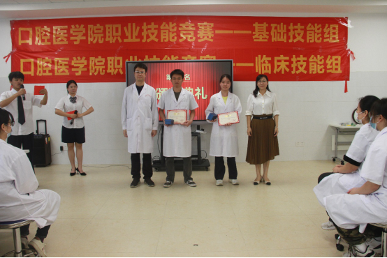 本次竞赛设置基础技能组及临床技能组,基础技能组在口腔技工实训室进行牙体雕刻项目;临床技能组在口腔临床技能实训室进行,包括牙体牙髓(窝洞制备)和口腔修复(牙体预备)两个项目。在主持人宣读完比赛规则后,参赛选手有序进场,比赛正式开始。比赛期间,选手们沉着冷静、认真细致,充分展现了严谨的比赛态度、娴熟的技术和灵活的手法。经过紧张而激烈的比赛以及评委老师们公平的评分,最终两组参赛组别分别评选出:一等奖2名,二等奖5名,三等奖8名。