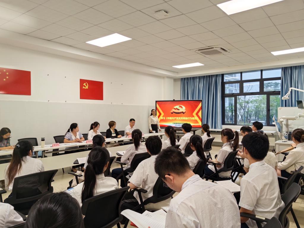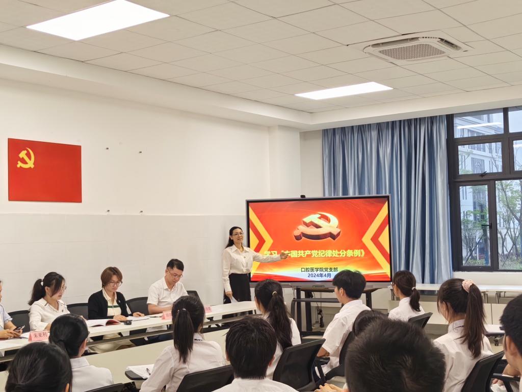 为了深入贯彻落实中央及省委、市委关于党纪学习教育的部署要求,扎实推进党纪学习教育各项工作。肇庆医学高等专科必赢bwin线路检测中心党支部于2024年4月28日在口腔实训楼3-104组织党员师生学习《中国共产党纪律处分条例》,会议由党支部副书记黄文专主持,朱亚利、张少姬等党员老师及党员学生参加本次会议。