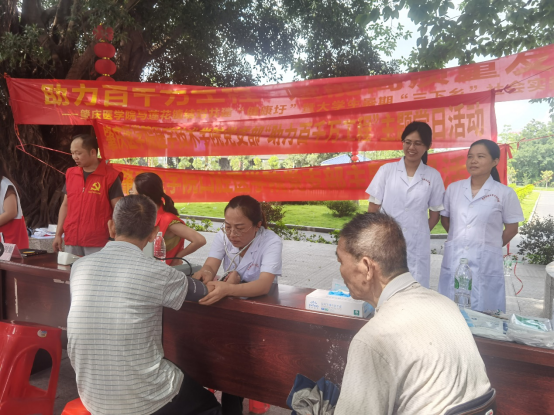 为进一步纵深推进“百千万工程”,助力优化基层医疗服务,加快推进乡村振兴,2024年7月4日,必赢bwin线路检测中心党支部积极响应学校党委号召,结合学校团委组织的大学生暑期“三下乡”社会实践活动,联合医学技术学院支部共赴莲花镇富廊村开展助力百千万工程,赋能高质量发展主题党日乡村义诊活动