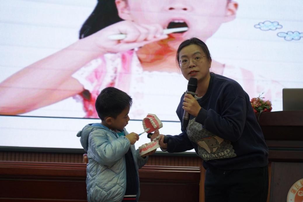 讲座中,张少姬老师以通俗易懂的语言,结合生动的图片和视频,向学生们讲解了牙齿的结构、龋齿的形成原因以及预防方法。为了让学生们更直观地理解口腔健康的重要性,张老师还邀请学生上台通过模型进行刷牙实操,并演示了正确的刷牙方法。在讲座过程中,不少学生与张老师积极互动,现场气氛热烈。学生们纷纷表示,通过这次讲座,他们学到了很多实用有效的防龋知识,今后会更加注意保护自己的牙齿。
