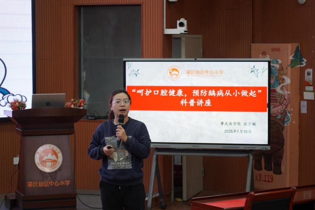 为推进高校联县科学共建项目的发展,进一步普及口腔健康知识,增强青少年龋齿预防意识,2025年1月10日,我院口腔医学教研室副主任张少姬老师为肇庆新区中心小学的学生们开展了一场以“呵护口腔健康,预防龋病从小做起”为主题的科普讲座。