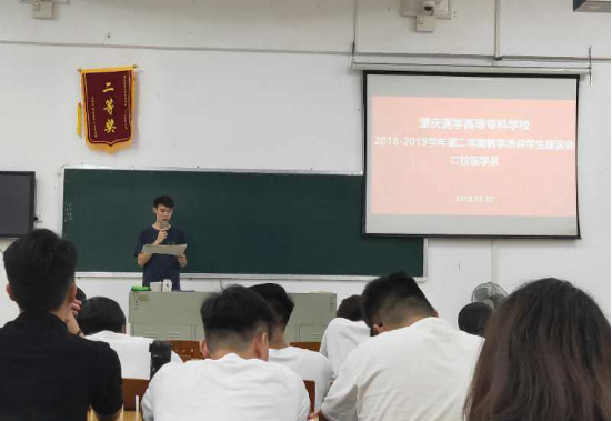 2019年5月30日19:30,我校口腔医学系在学校督导小组的组织下于鼎湖校区召开2018-2019学年第二学期教学质评学生座谈会。会议由口腔医学系黎祺副主任主持,参会有各专任教师、辅导员以及20余名各班级学生代表。