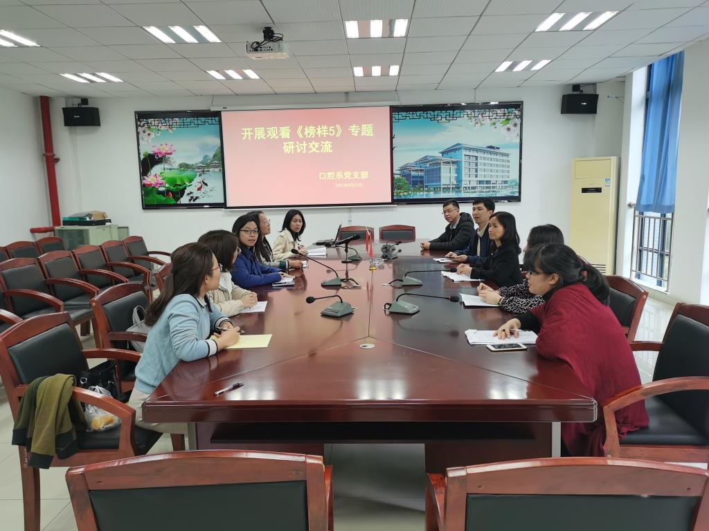 2021年3月22日晚8点,口腔系党支部组织全体教师通过ZOOM网络教学平台观看学习了《榜样5》专题节目。专题节目通过典型事迹再现、嘉宾现场访谈、诗朗诵、重温入党誓词等形式,展现了积极投身疫情防控工作的共产党员不忘初心、牢记使命、敢于斗争、敢于胜利的大无畏气概,彰显了基层党组织战斗堡垒作用和党员先锋模范作用,诠释了生命至上、举国同心、舍生忘死、尊重科学、命运与共的伟大抗疫精神。