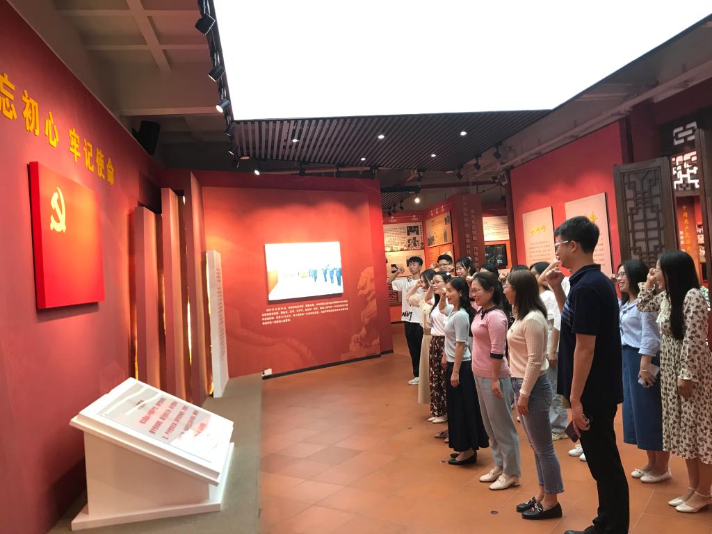 铮铮誓言,拳拳红心。在革命传统教育现场,在口腔系刘燕书记的带领下,口腔党支部全体整齐列队,高举右拳,面向鲜红的党旗庄严宣誓,全体党员干部同志共同重温入团誓词,重拾入党初心,强烈的使命感油然而生。