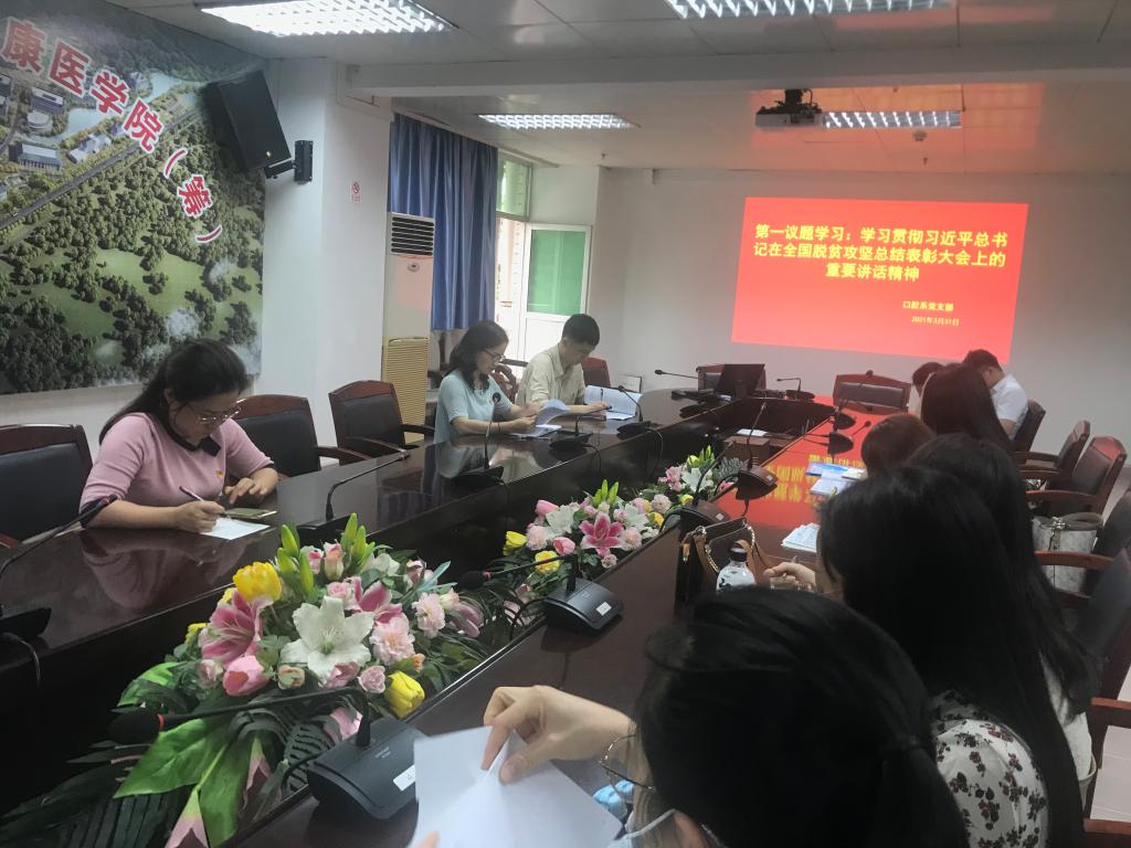 口腔系书记刘燕带领全体党员学习《习近平:在全国脱贫攻坚总结表彰大会上的讲话》重要讲话精神