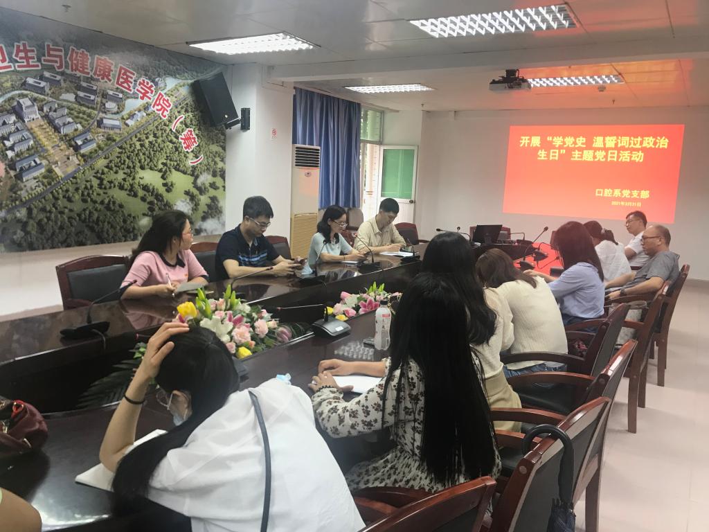 口腔党支部开展“学党史,明初心”主题党日活动之党史专题理论学习活动,将专题宣讲学习和支部集中讨论相结合,主题突出、内容丰富,进一步推动了口腔党支部全体党员党史专题理论学习,激励大家时刻坚守初心、践行使命,为口腔卫生教育事业奋力前进,为我国实现“两个百年”的奋斗目标和中华民族伟大复兴的中国梦不懈奋斗。