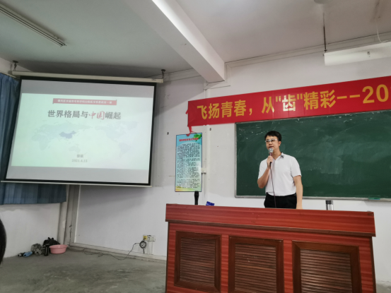 2021年4月14日下午,口腔系黎祺主任以其深厚的学术功底、缜密的逻辑思维、丰富翔实的内容、诙谐幽默的语言,给支部全体党员和二年级全体学生上了题为“世界格局与中国崛起”思政第一课,从世界格局的由来、世界近代格局中的中国民族独立运动、世界现代格局与中国崛起以及新时代中国面临的机遇与挑战等方面,综合性的深入剖析了当今世界百年未有之大变局形势,中国面临的机遇与挑战。
