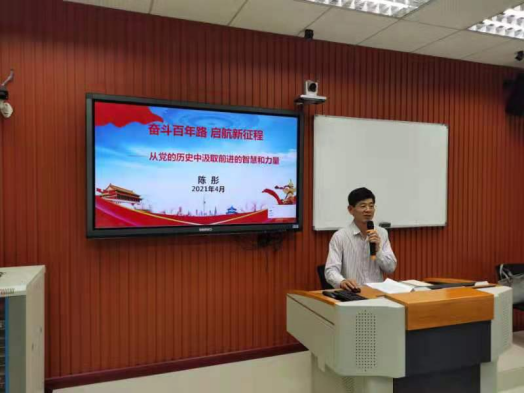 2021年4月28日,我校党委副书记陈彤在端州教学楼3楼录播室为口腔系党员教师讲授题为“奋斗百年路,启航新征程——从党的历史中汲取前进的智慧和力量”的专题党课,本次党课通过展现了各种珍贵的视频和图文党史资料,讲述了我们党百年发展历程中革命先辈的奋斗事迹,极大地鼓舞着全系党员教师以更加饱满的热情投身报效祖国的伟大实践。