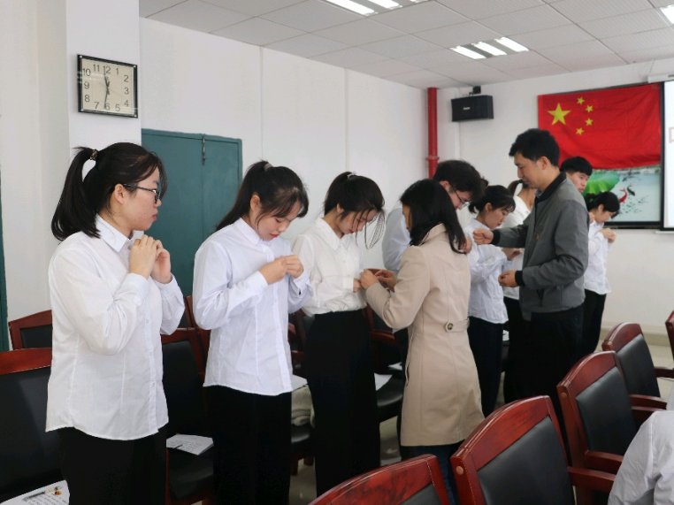 最后,刘燕书记、王华山副书记为预备党员佩戴党徽,刘燕书记带领正式党员及预备党员进行宣誓,并做了总结发言。她指出发展党员是党组织的一件大事,作为党员,要将党的思想内化于心、外化于行,立足于本职,要有坚定的理想信念,充分发挥党员先锋模范作用;同时,作为肇医学子,要利用专业知识,严守医德医风,为医疗卫生事业作出自己的贡献。