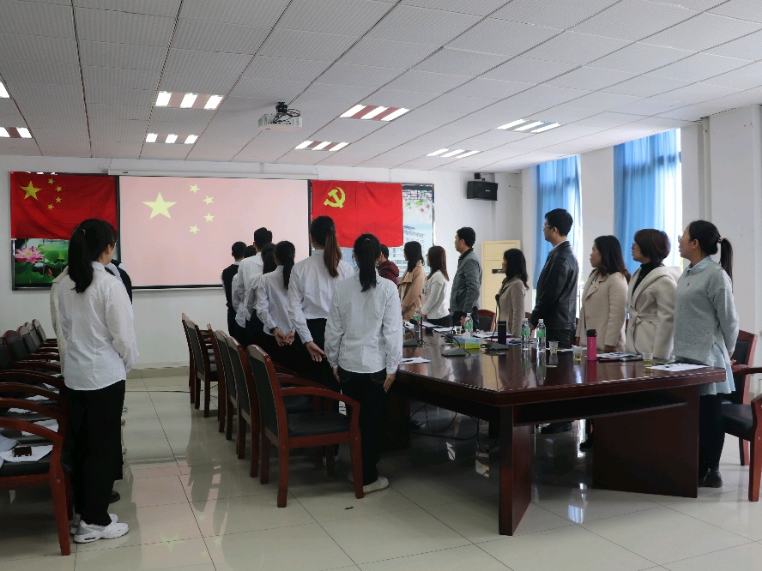 2021年12月24日上午口腔系党支部于鼎湖校区综合办二楼召开关于预备党员转正暨党员发展大会,会议由口腔系党支部组织委员冯伟健主持,党支部书记刘燕、口腔系主任黎祺、党支部副书记王华山,口腔系全体师生党员、预备党员和发展对象参加了本次大会。在庄严的国歌奏唱声中,本次大会拉开序幕,冯伟健老师介绍了本次会议的议程。
