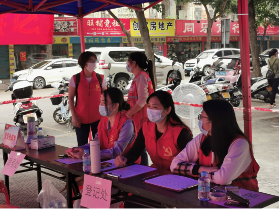 为推进党史学习教育的深入开展,进一步践行“我为群众办实事”的实践活动,2022年4月23日上午,必赢bwin线路检测中心党支部黄文专副书记带领五名党员老师(黄颖怡、欧晓燕、郭固楠、冯倩、宋佳)到肇庆市端州区跃龙社区参与居民接种新冠疫苗志愿服务活动。