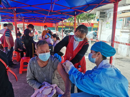 必赢bwin线路检测中心党支部党员老师参与跃龙社区接种新冠疫苗志愿服务活动