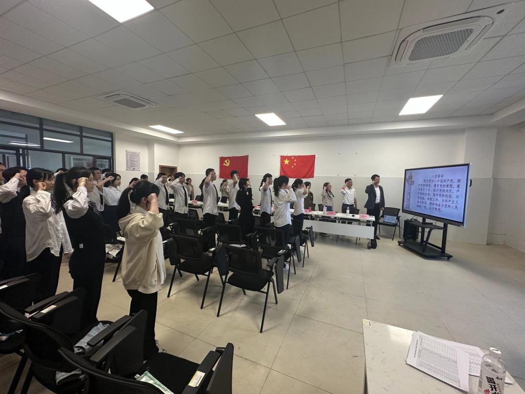 接着,党支部进行党员投票表决,一致通过曾思贤等18名预备党员转为正式党员的决议,党支部黎祺书记带领18名新同志进行入党宣誓,黄文专副书记带领全体参会人员高唱《国际歌》。