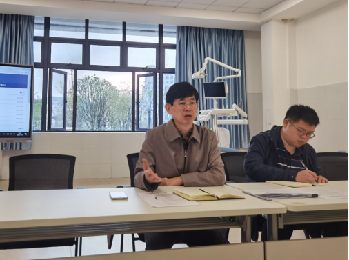 首先,黎书记详细介绍了本党支部的概况,并汇报了主题教育工作及全面从严治党工作的开展情况。黄文专副书记汇报了学生工作情况,包括纪律教育和安全教育、学生党员发展、贫困生帮扶以及意识形态工作等。