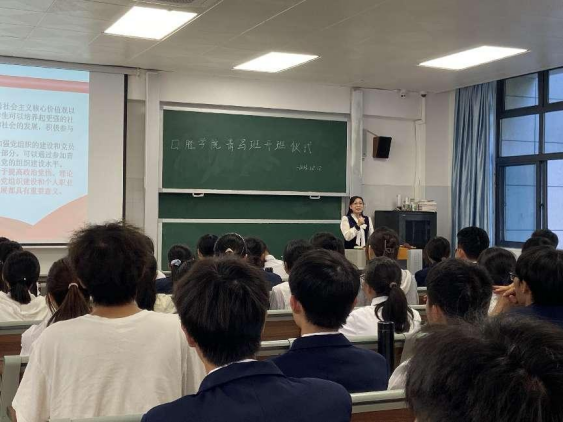 开班仪式结束后,团委书记欧晓燕以《为青春喝彩》开启了本期培训班理论学习的第一讲。欧书记通过讲述共青团的概况、共青团的历史、共青团的组织原则,并结合青年大学生们实际学习和生活中遇到的疑惑和事件进行了深入剖析,通过分析一个个普遍而典型的问题,向学员们展示了新时代合格青年该有的精神面貌和一代代优秀大学生的卓越风采,并为大家描绘了学校、学院和个人未来发展的宏伟蓝图。
