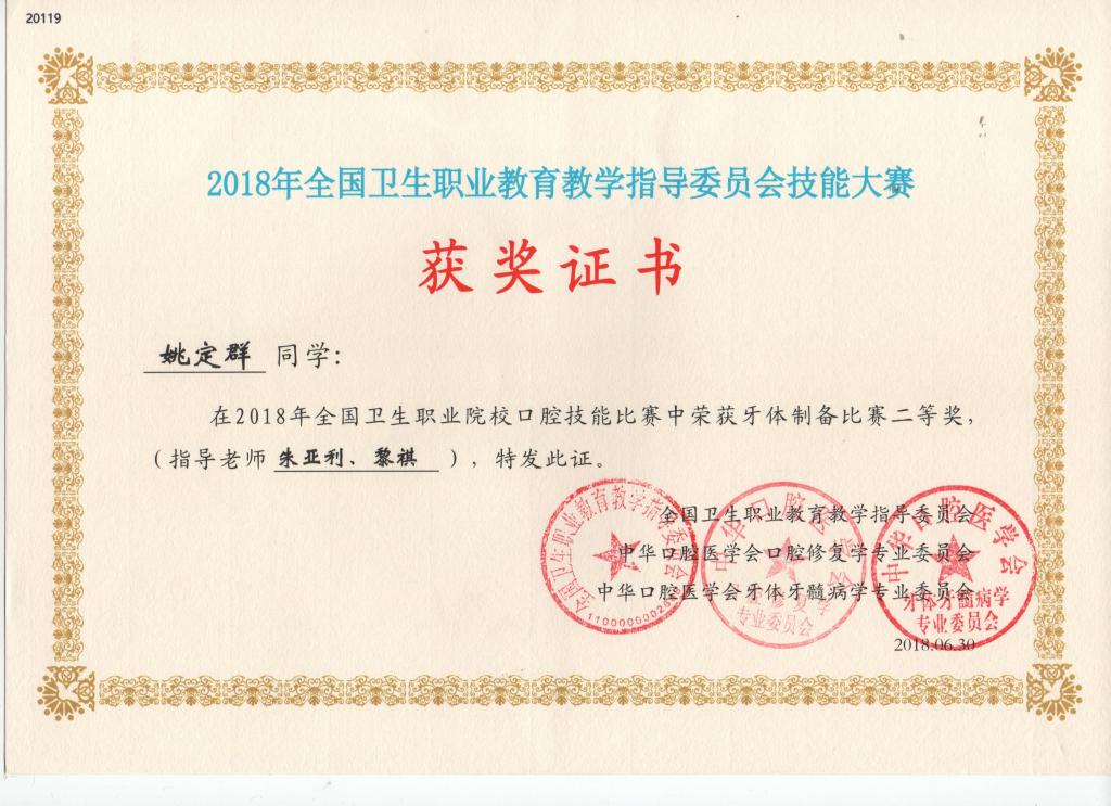 2018年全国卫生职业院校口腔技能比赛牙体预备比赛二等奖