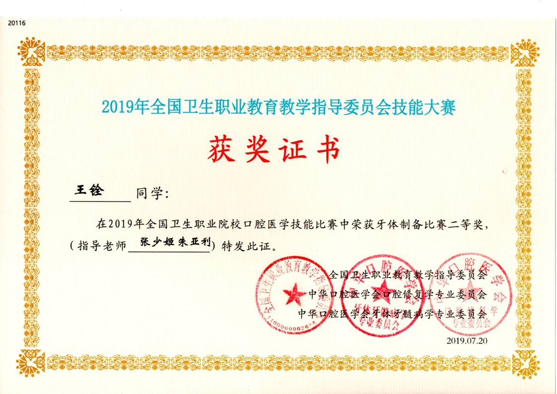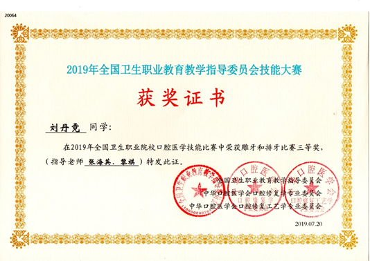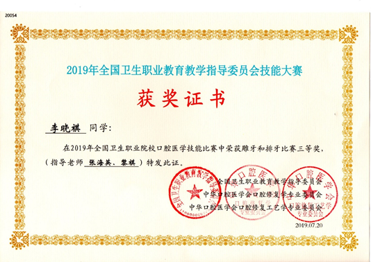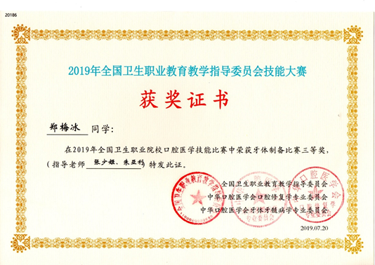 2019年全国卫生职业院校口腔医学技能比赛牙体制备比赛二等奖