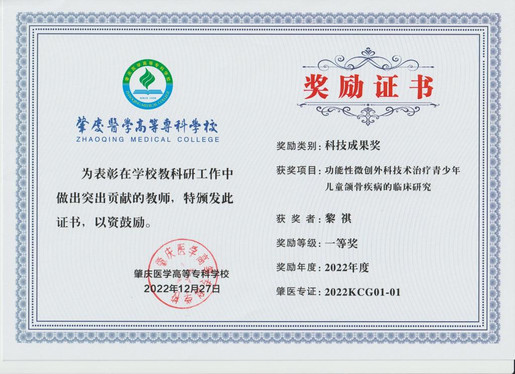 校级2022年度科技成果奖一等奖