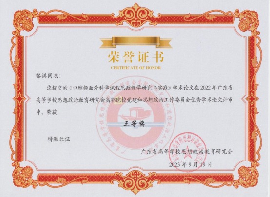 2022年度广东省高等学校思想政治教育研究会党建和思想政治工作委员会优秀学术论文三等奖